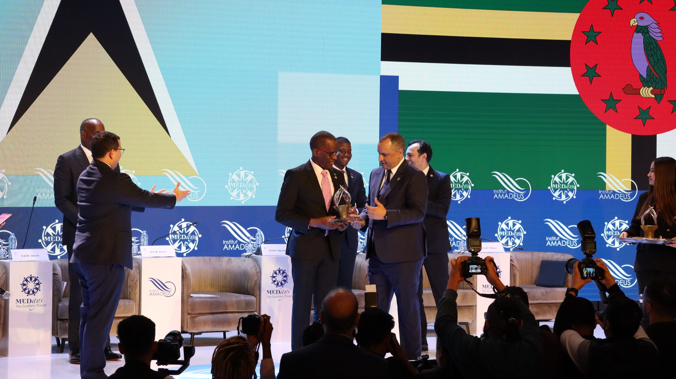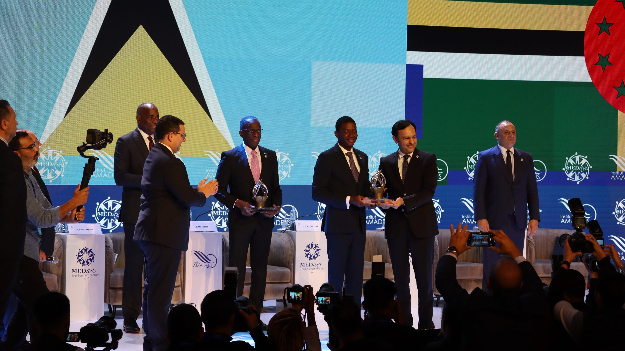 وتميز حفل اختتام المنتدى، المنظم تحت الرعاية السامية لصاحب الجلالة الملك محمد السادس، بمنح الجائزة المرموقة “ميدايز 2024″، مساء السبت بطنجة، لثلاثة من أبرز قادة منطقة الكاريبي، ويتعلق الأمر بالوزير الأول لغرينادا، ديكون ميتشل، والوزير الأول لكومنولث دومينيكا، روزفلت سكيريت، والوزير الأول لسانت لوسيا، فيليب جوزيف بيير.