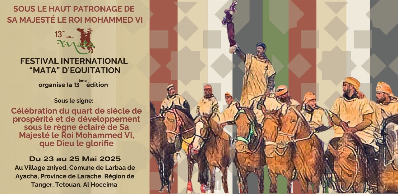 البوغاز نيوز : تنعقد الدورة الثالثة عشرة للمهرجان الدولي “ماطا” للفروسية، المنظمة تحت الرعاية السامية لصاحب الجلالة الملك محمد السادس، من 23 إلى 25 ماي الجاري.