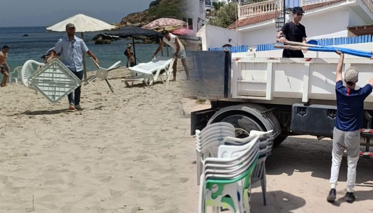 بشاطئ “بلايا بلانكا” بطنجة.. حملة لتحرير الملك العمومي البحري تحجز 120 كرسيًا و20 طاولة