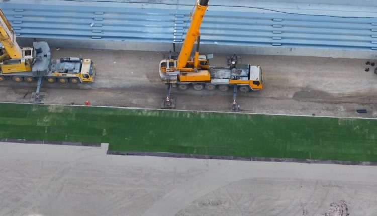 وبإشراف من مهندسي شركة صوميكوتراد، تتواصل عملية تركيب هذه القطع من العشب، الذي أعتمد سلفا في ملاعب المونديال بدولة قطر سنة 2022، وقبلها بعديد من الملاعب بالولايات المتحدة الأمريكية، في عملية وفرت لها كفاءات مغربية ومعدات متطورة، وهو ما مكن الشركة المكلفة وفي ظرف وجيز من بلوغ نسبة مهمة في عملية تركيب العشب .