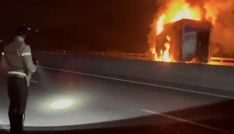 البوغاز نيوز : اندلع، ليلة أمس الجمعة 22 غشت، حريق في شاحنة قادمة من أوروبا على الطريق السيار A5 على بعد كيلومترات قليلة من ميناء طنجة المتوسط، وذلك نتيجة عطب تقني، وفق ما علم لدى السائق.