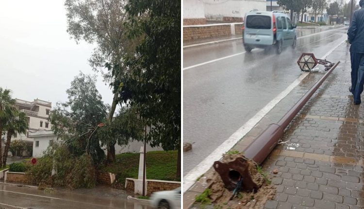 المضيق : رياح قوية تقتـ ـلع أعمدة كهربائية وأشجار واضطراب في حركة السير